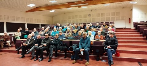- Pierre-yannick Legal, doyen émérite de la faculté de droit de Nantes, a évoqué l'importance, pour le diocèse des pèlerinages à Lourdes, un élément "fédérateur" pour le diocèse marqué par la Révolution et qui reprend des forces. On dit "Le pèlerinage de la Vendée à Lourdes" ou "les Vendéens à Lourdes". Chaque évêque depuis 1872 a montré son attachement à ce temps fort diocésain. Celui-ci a pu se développer avec la mise en place de lignes de chemin de fer vers Bordeaux. Lourdes est aussi "venu en Vendée", il suffit de voir le nombre de grottes de Lourdes dans les paroisses, le nombre des pèlerinages, le patronage de certains églises, et même d'un stade de football (aux Herbiers, le stade Massabielle). Ces pèlerinages rassemblaient des Vendéens de toutes conditions, des jeunes aussi bien que des adultes, des bien-portants comme des handicapés, des enfants de chœur... Dans le service de l'hospitalité vendéenne, on trouve encore cette diversité de conditions. Un exposé riche, très intéressant, présenté avec passion et parfois un peu d'humour...